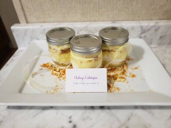 Our signature jar desserts come in different type fillings from cake to cheesecake to popcorn. And they vary in price depending on how many and what you want in them.